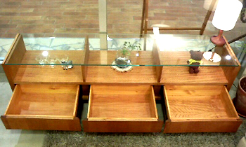 こちらのTVボード、ニヤト材のオイル仕上げ。
