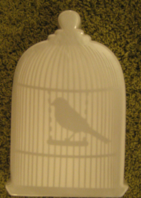 『かごに入っている鳥さん』と『にわとり』が陶器にプリントしてあるので