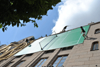 画像では分かりづらいですが、ビルの壁を利用して吊られた状態で