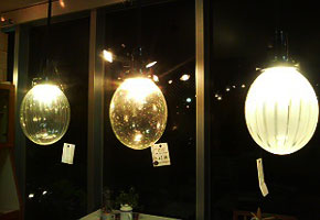 たまごの形をしたガラス細工のようなペンダントライトなんです。