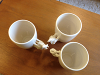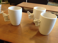 取っ手の部分がウシ・ゾウ・ライオンになっているマグカップです。