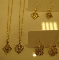 コチラのネックレスとピアスです。