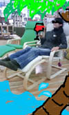 海辺の木の陰でワインを飲むタウラさん。優雅過ぎます。