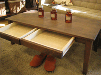 ちょっと見難いですが、ダイニングテーブルは引き出しつき。