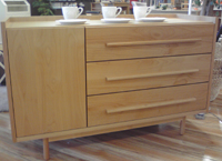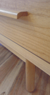 前板、引き手、脚は無垢材を使用しており無垢材ならではの温かみのある木の質感が味わえます。