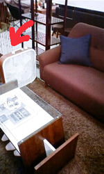 蓋がテーブルの下にころがって行ってしまい、もぐって蓋を確保。