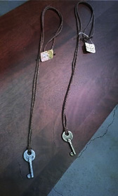 ゴールドとシルバーの鍵型のネックレス。