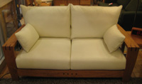 ナラ材のフレームに生成のクッション。