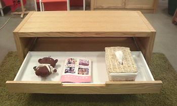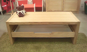 雑誌や新聞、ティッシュBOX、くまちゃんなどを置いて。