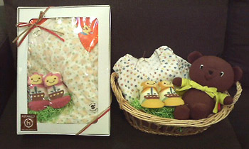 また、靴下やタオル、ぬいぐるみなどと一緒に、箱ギフトやかごギフトにしても。