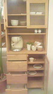 開き戸は可動式なのでお皿の高さに合わせて収納可能ですし、引き出しは下段にいくにつれて高さが違っているのでそれぞれに合う収納ができます。