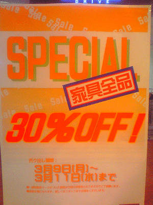 『家具全品30%OFF!!』