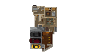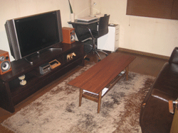 ブラウン色の家具をメインに色を統一化、少し暗めの雰囲気を出し白熱球を使用した灯りでとてもムードのある空間を演出しております。(注:画像はフラッシュを使用している為、実際の照度とは異なります)