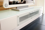 ガラスのセンターテーブルなのですが、ワイドが90センチとコンパクトに収まった