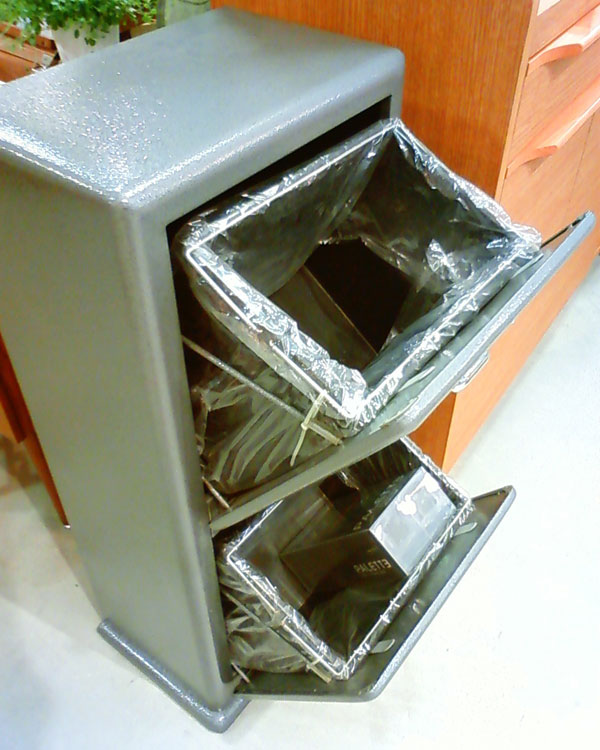 取っ手付きのかごにすっぽりと収まってるのが良い感じです。