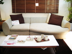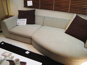 とても珍しい形状のデザインが他を寄せ付けないフォルムをかもし出しています。ベージュ色のこちらのソファは日本ではビッグ3に入る東京の表参道ヒルズ近くにショールームを構える エスティック社の自慢のカウチソファです。(実際見てきました、すごいショールームでした)