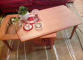 すこしだけスライドさせてスライド下段のガラステーブルを見せるのもオススメですよ~